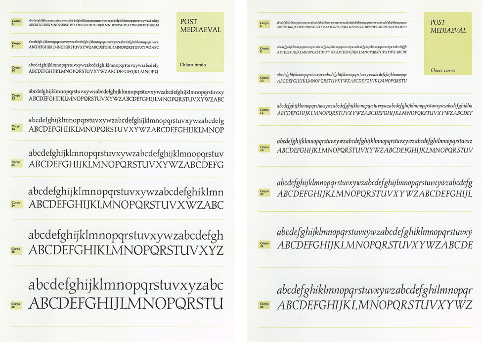 Chiaro Corsivo / Light italic: 6, 8, 10, 12, 16, 20, 24, 28 pt
