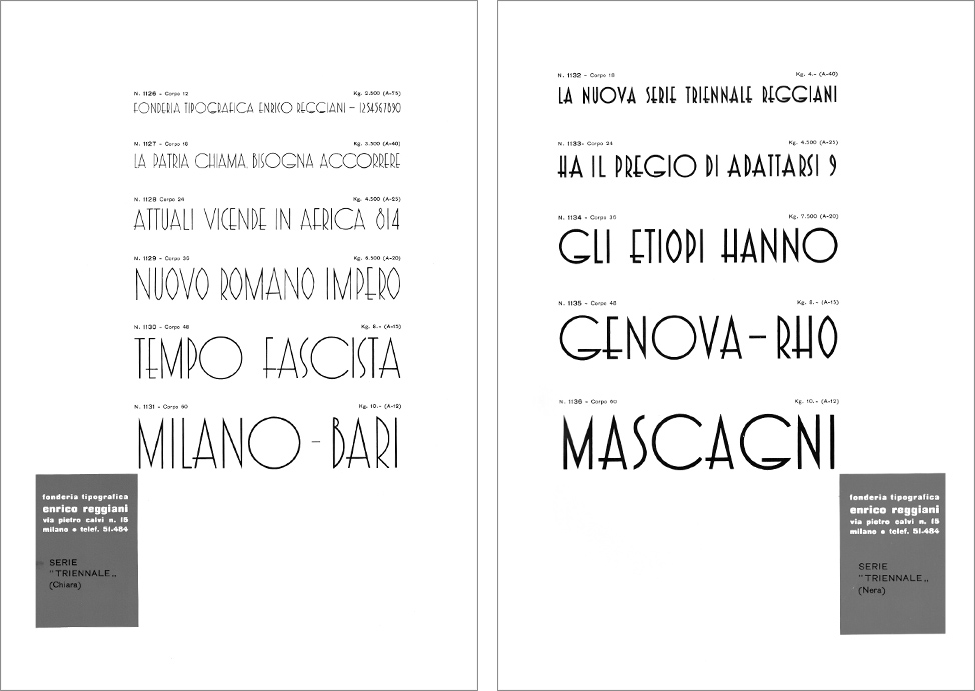 Nero / Bold: 18, 36, 60 pt (piombo / lead) – 4, 6, 8, 12 righe (legno / wood)