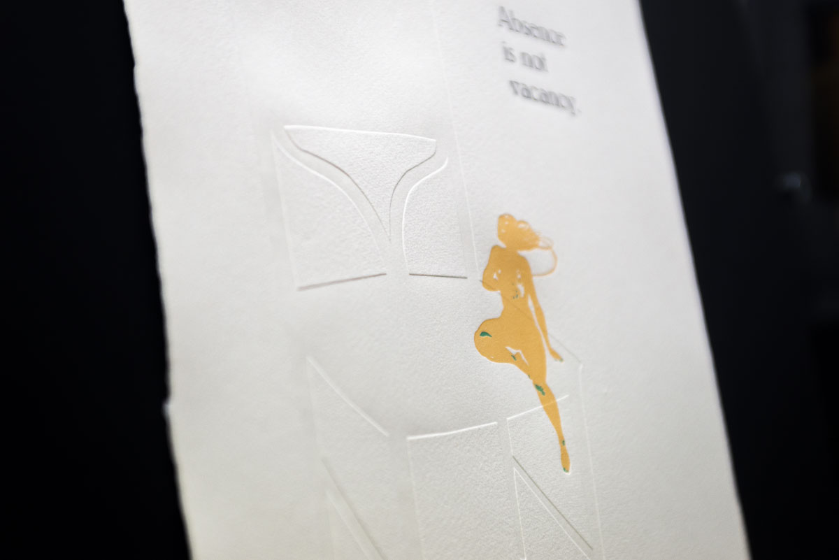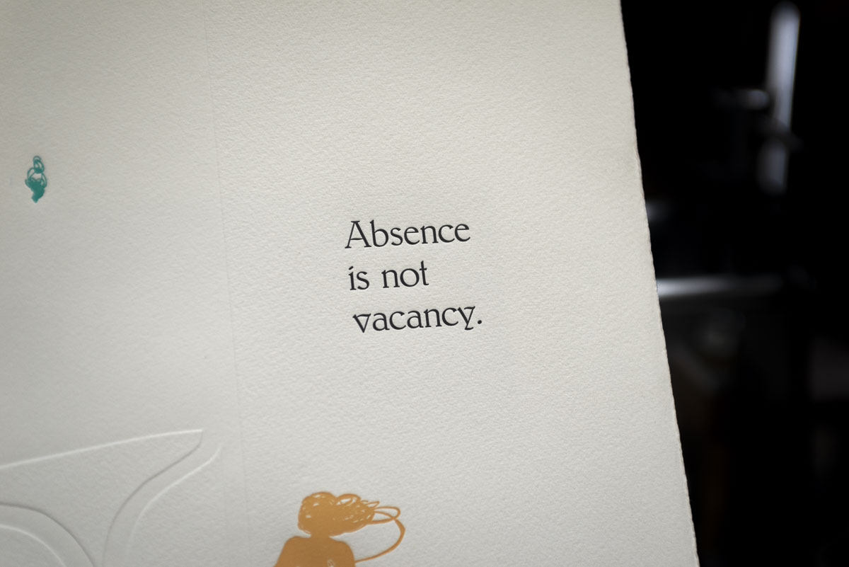 Collaborazione con l'illustratrice Grazia LaPadula in occasione del festival Inchiostro 2023. Per l'occasione abbiamo sperimentato con diverse tecniche di riproduzione: cliché fotopolimerico, caratteri mobili e battuta a secco su torchio calcografico.
