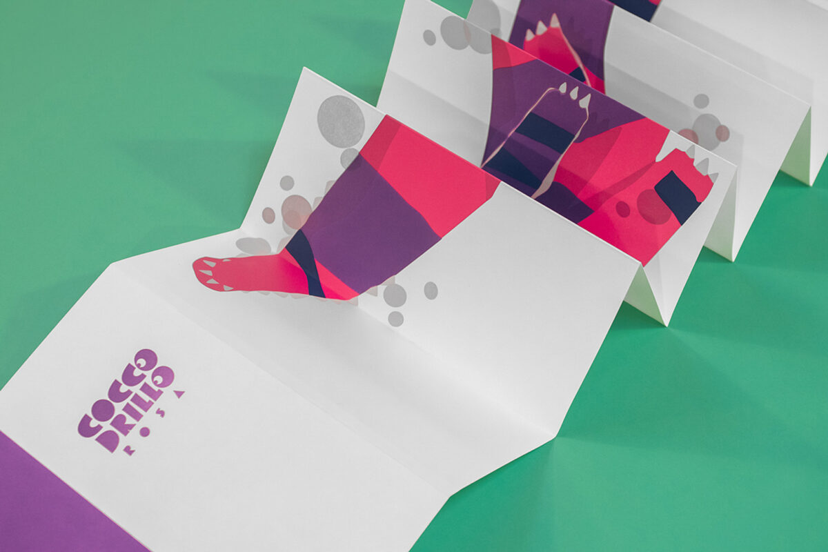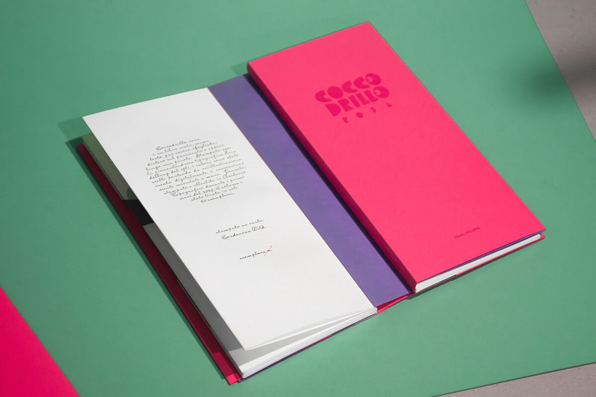 Coccodrillo Rosa è un libro muto, senza testa, può essere sfogliato, disteso sul pavimento o appeso lungo una parete.