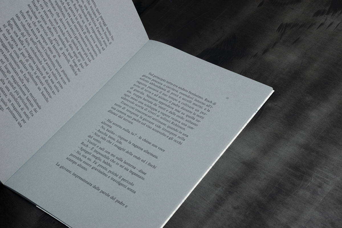Il pazzo del faro è uno degli innumerevoli racconti scritti da Emilio Salgari, ormai distribuito con licenza aperta Creative Commons. Venne originariamente pubblicato su Il Giornalino della Domenica. Il racconto si svolge interamente su un’isola, uno scoglio che emerge dall’Atlantico a sud della Nuova Scozia. Sull’isolotto si erge un faro, presidiato dal Guardiano e da sua figlia. Una notte si scatena lungo la costa un’improvvisa e impetuosa tempesta che metterà a dura prova la resistenza e la lucidità dei due. L’edizione che abbiamo curato è stata interamente composta in caratteri mobili e stampata in pianocilindrica, il testo stampato è completato da tre calcografie originali di Marco Tallone, incisore. L’insieme di libro e incisioni formano una vera e propria edizione artistica, completamente curata e prodotta da Archivio Tipografico con Marco Tallone.