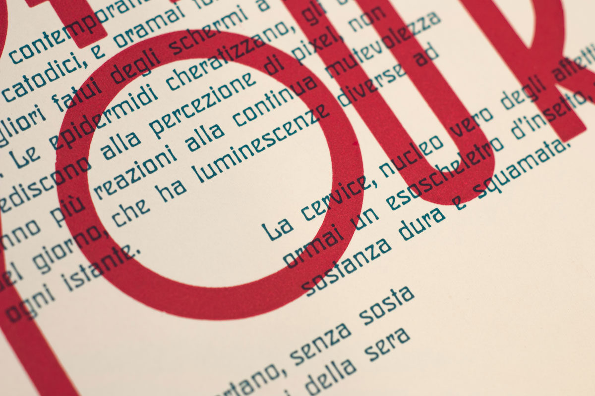All'inizio del 2010 Roberto Necco (Elyron) avvia una collaborazione con Archivio Tipografico per la realizzazione di una serie di manifesti che unissero la sua esperienza di illustratore e designer con la nostra collezione di caratteri mobili. Questo poster è stato realizzato con una grande matrice in linoleum divisa in quattro passaggi colore e diverse composizioni di caratteri in legno e piombo.