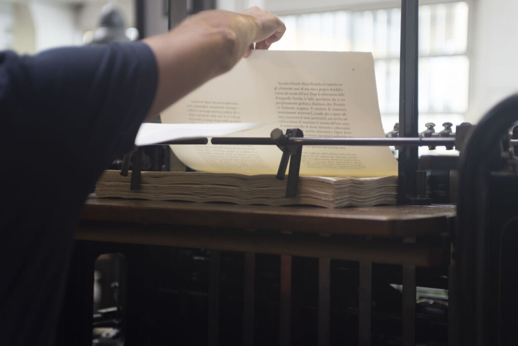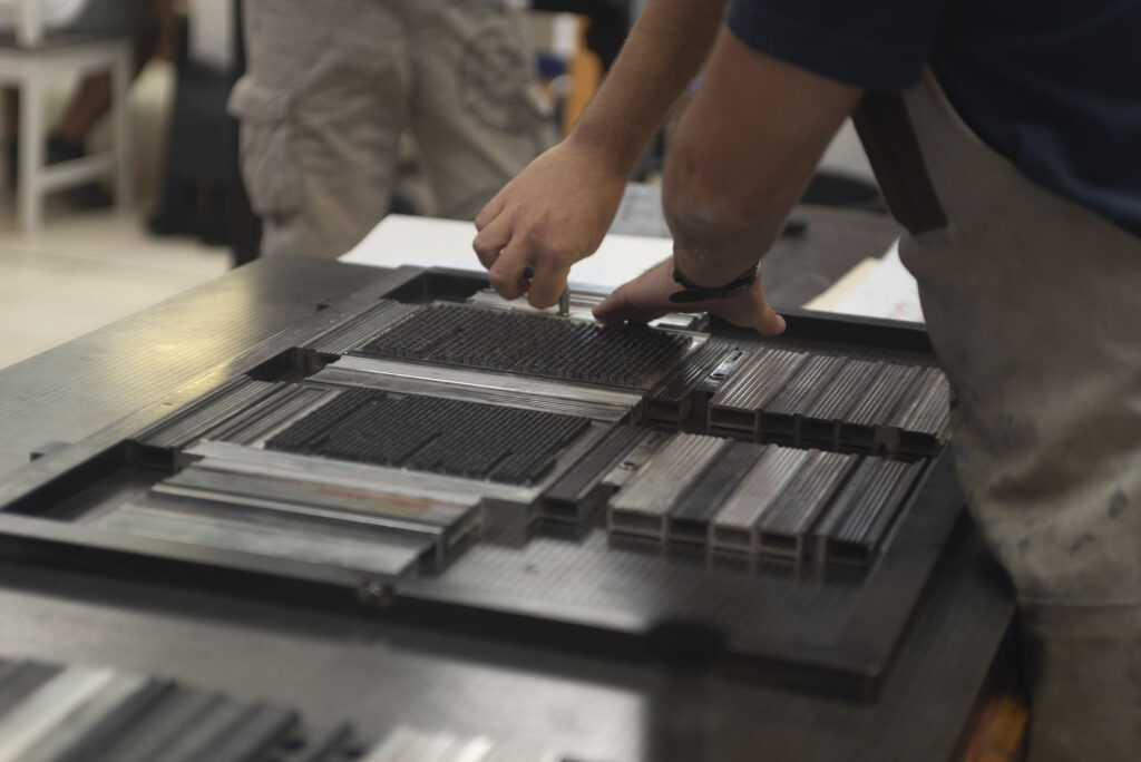 La composizione è stata realizzata con diversi pesi e stili del carattere originale in piombo Garaldus.