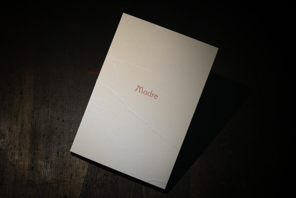 Madre è un libro-poster che si snoda in tutte le direzioni, cercando di trovare un origine, un punto zero da cui ricominciare quando ci ritroviamo al buio