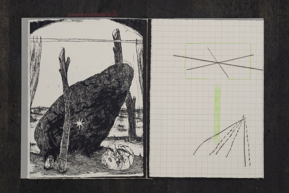 Tramite il segno e la sottrazione della materia, caratteristiche essenziali dell’incisione, si esplora il significato profondo che il peso porta con sé tramite la contrapposizione tra pesantezza e leggerezza, rapporto che Kundera ha definito come “la più misteriosa e ambigua tra tutte le opposizioni”. Il costante gioco di elevazioni e discese avviene allo stesso modo nella contrapposizione stilistica delle incisioni degli autori: ogni immagine nasce dall’incontro-scontro con le altre, in accostamenti sempre nuovi che lo stesso lettore può determinare grazie alla particolare rilegatura.