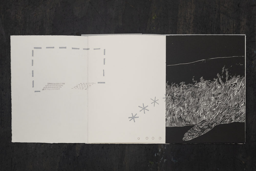 Immagini dalle molteplici consistenze che si stratificano su carte di differenti opacità dialogano con le poesie per raccontare le cicatrici di un abisso climatico che è al contempo emotivo e psicologico e si cela nel profondo dell’essere umano. In una doppia direzione, il libro vuole scavare nelle profondità più temute e poi invitare a riemergere verso immagini più luminose e speranzose.