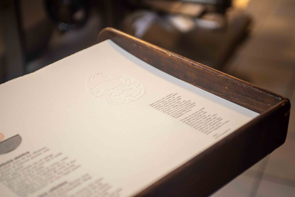 Nel 2023 e per i due anni successivi Archivio Tipografico si è occupato della stampa dei menu stagionali del Ristorante Del Cambio, progettati in collaborazione con Roberto Necco (Elyron).