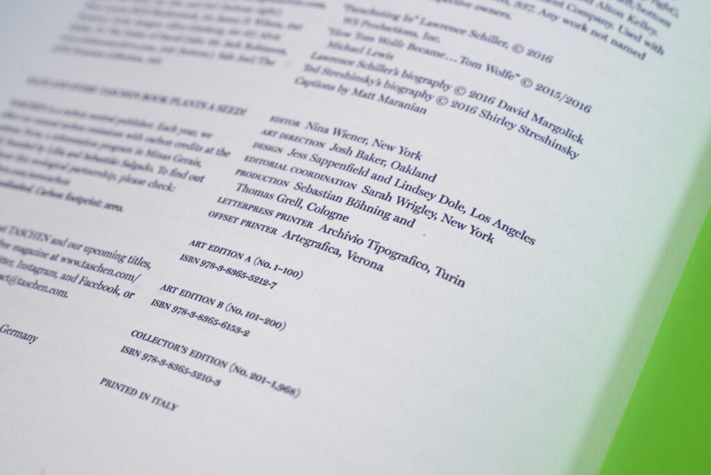 Edizione da collezione (n. 201–1.968), ciascun esemplare è stato numerato e firmato da Tom Wolfe.