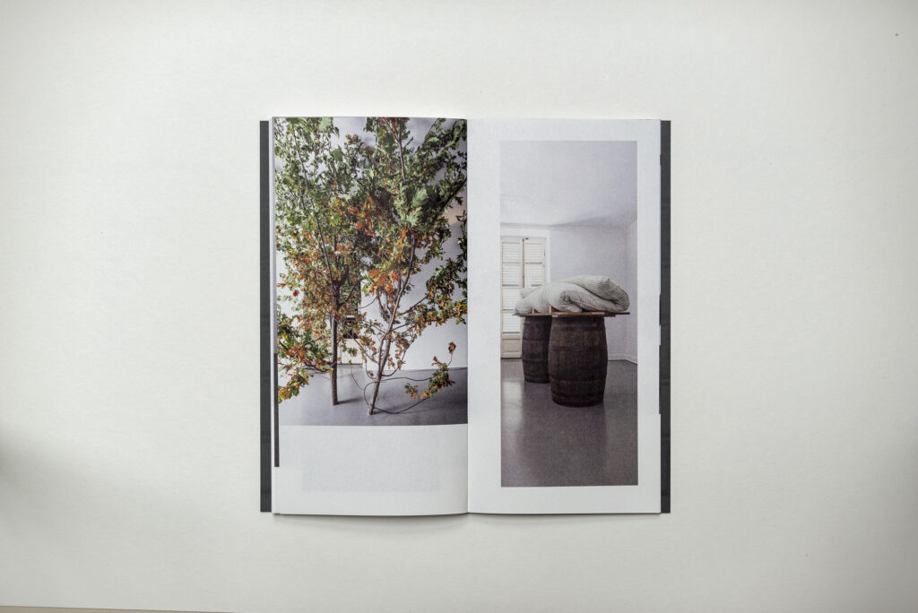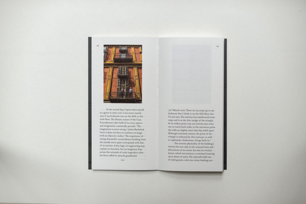 Il blocco libro è stato stampato in offset da Grafiche Antiga, la copertina da Archivio Tipografico con matrici fotopolimeriche. Sulla copertina è applicata a mano un’immagine che riproduce una polaroid scattata durante la residenza-mostra di XXX.