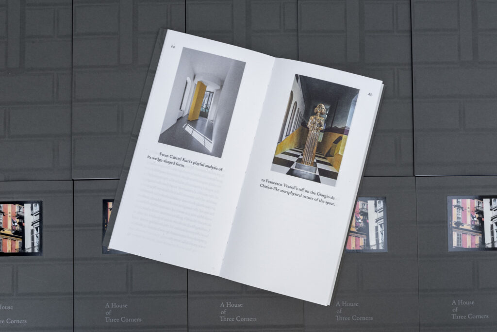 Libro progettato per Galleria Franco Noero in occasione dei XX anni della fondazione. A house of three corners racconta gli anni in cui la galleria aveva sede nell’edificio di via Giulia di Barolo all’angolo con corso San Maurizio, la famosa Casa Scaccabarozzi di Alessandro Antonelli, nota comunemente come “Fetta di polenta”.