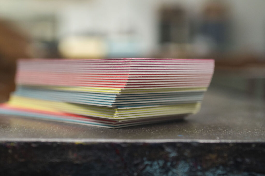 Su richiesta, si realizza anche l’accoppiatura di cartoncini, inclusa la possibilità di combinare colori diversi per ottenere effetti grafici personalizzati e distintivi.